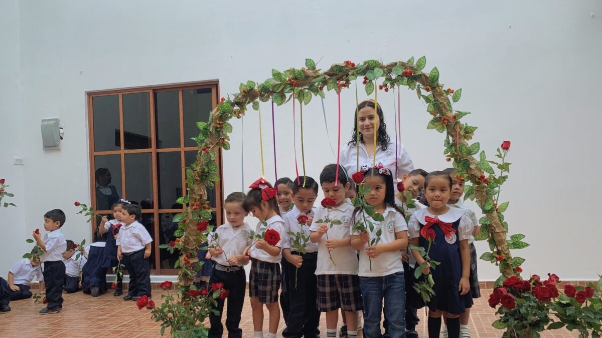 La ceremonia comienza con un paseo por un arco floral, creado amorosamente por nuestra comunidad. Este arco simboliza no solo la entrada a un nuevo ciclo educativo, sino también el paso a un nuevo nivel de crecimiento emocional e intelectual. Los niños reciben una rosa de color rojo intenso, que simboliza la vitalidad, la alegría y la belleza que los acompañarán durante su tiempo en el jardín de niños.